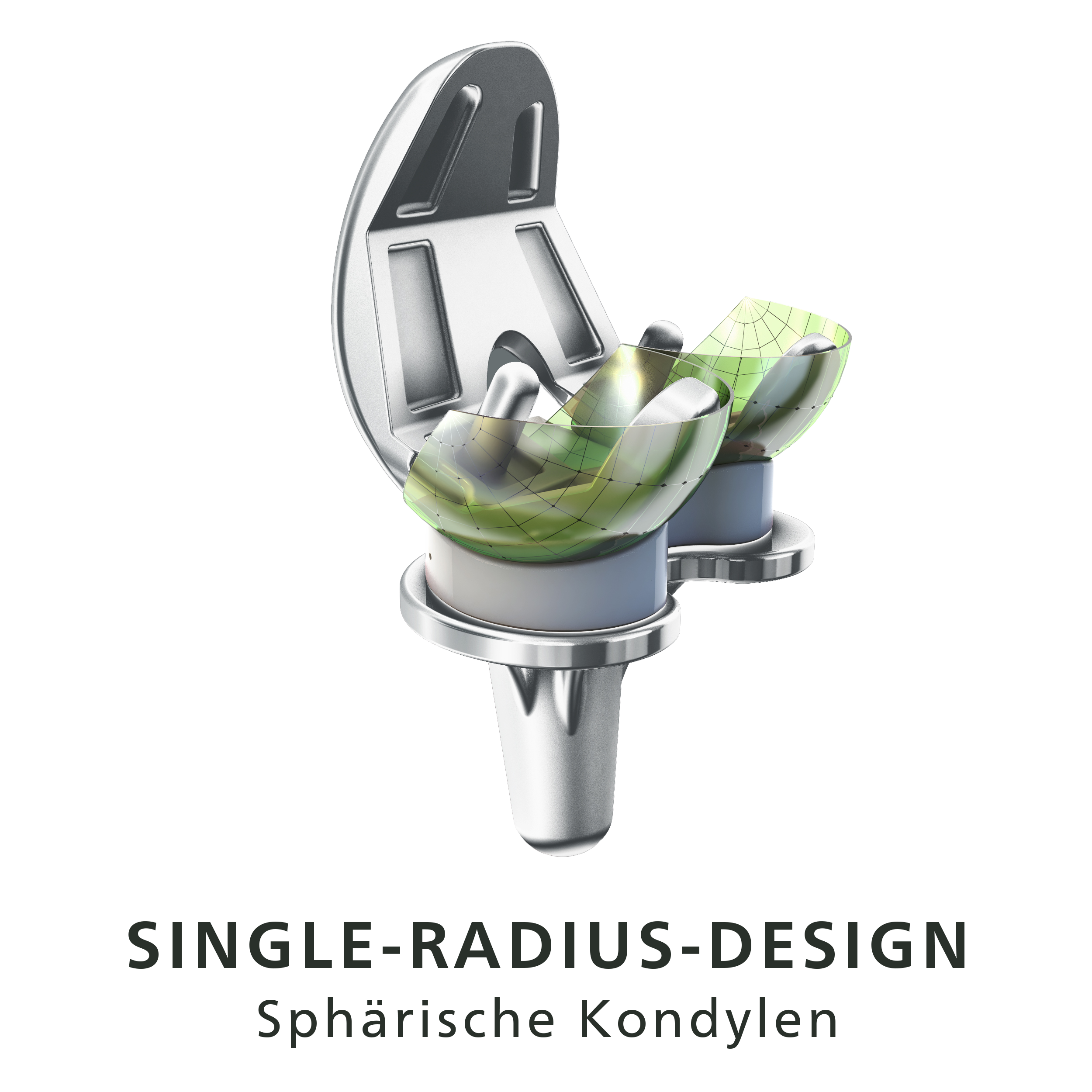 Assoziierte Vorteile des SINGLE-RADIUS-Designs (sphärische Kondylen)