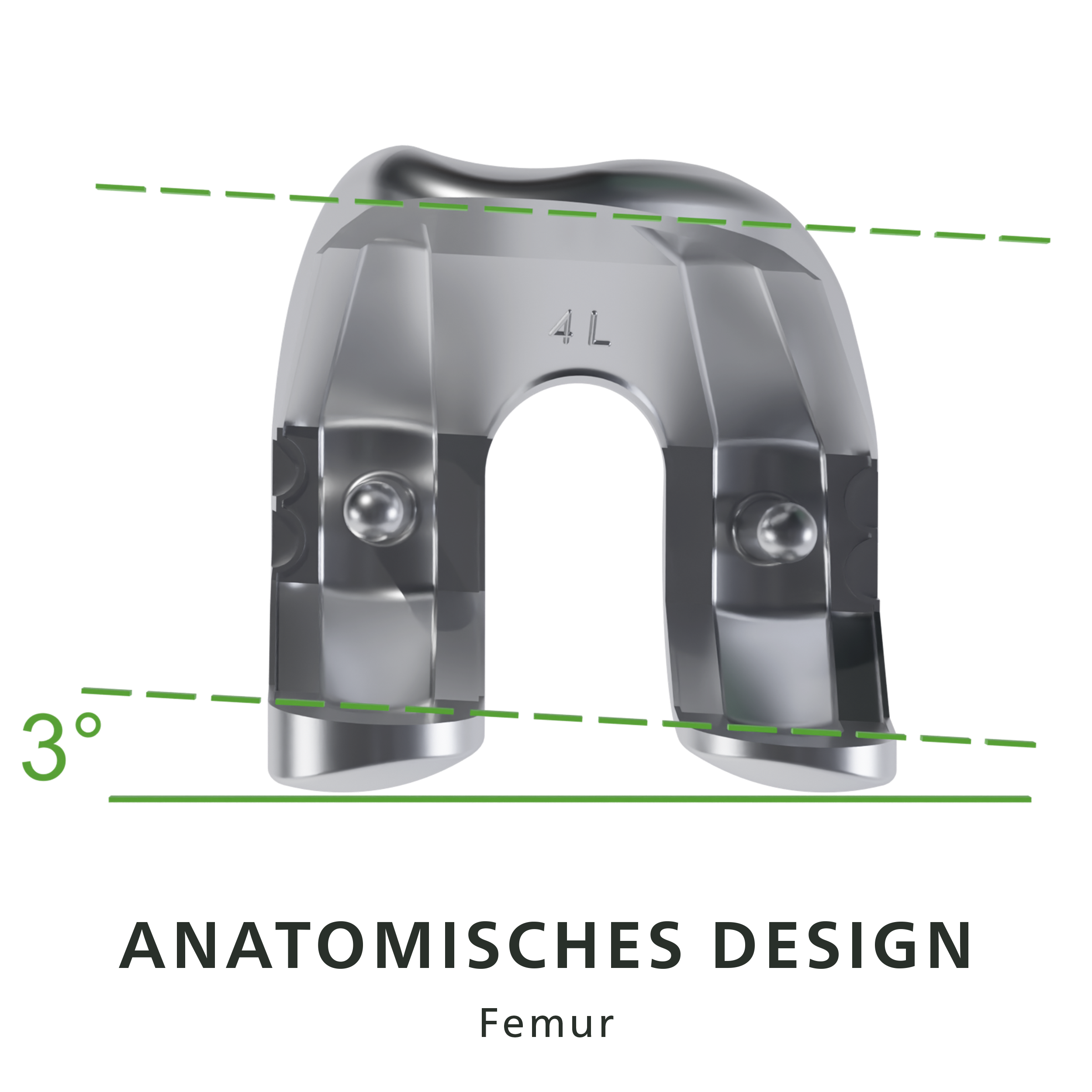 - Keine zusätzliche Knochenresektion für CAM/SPINE-Mechanismus