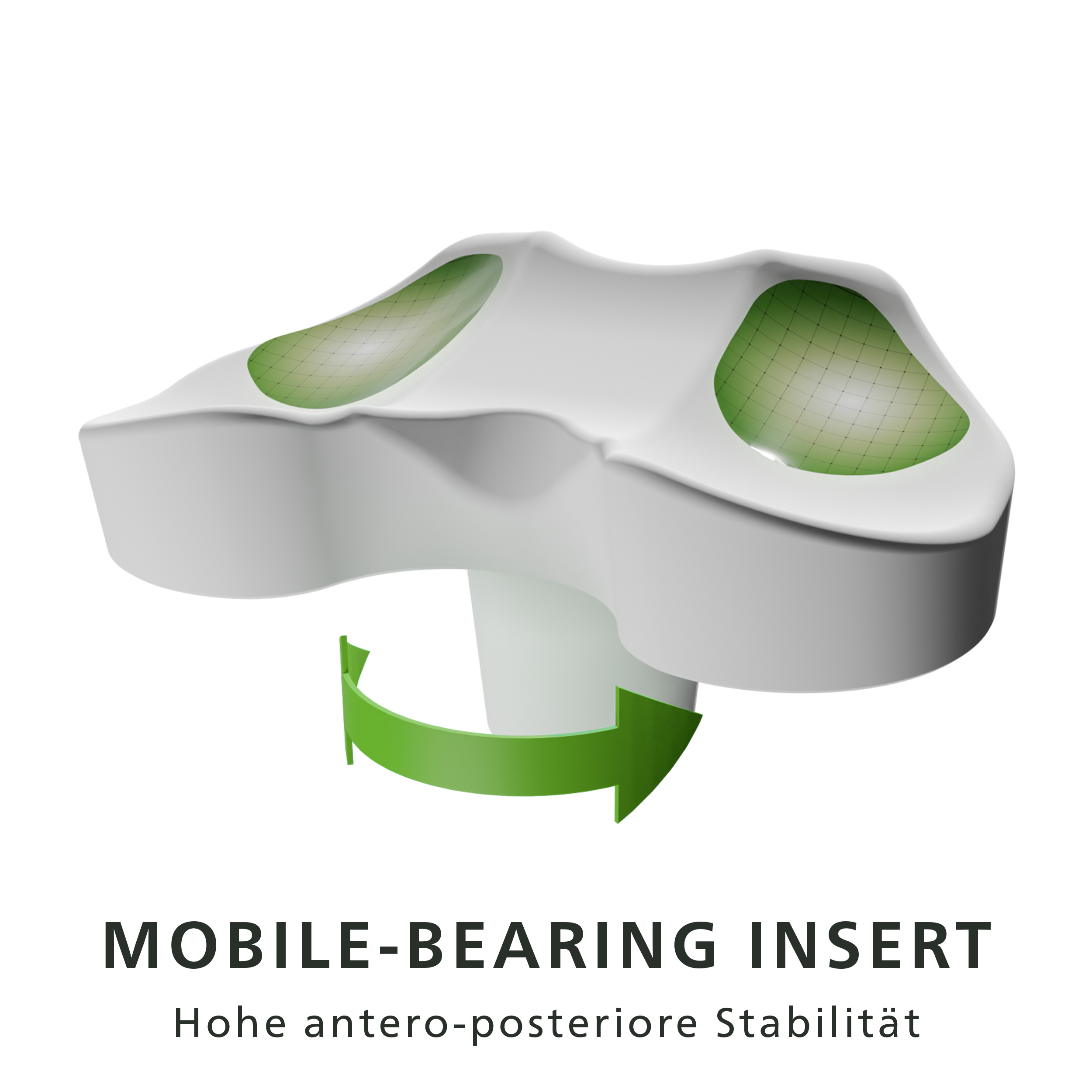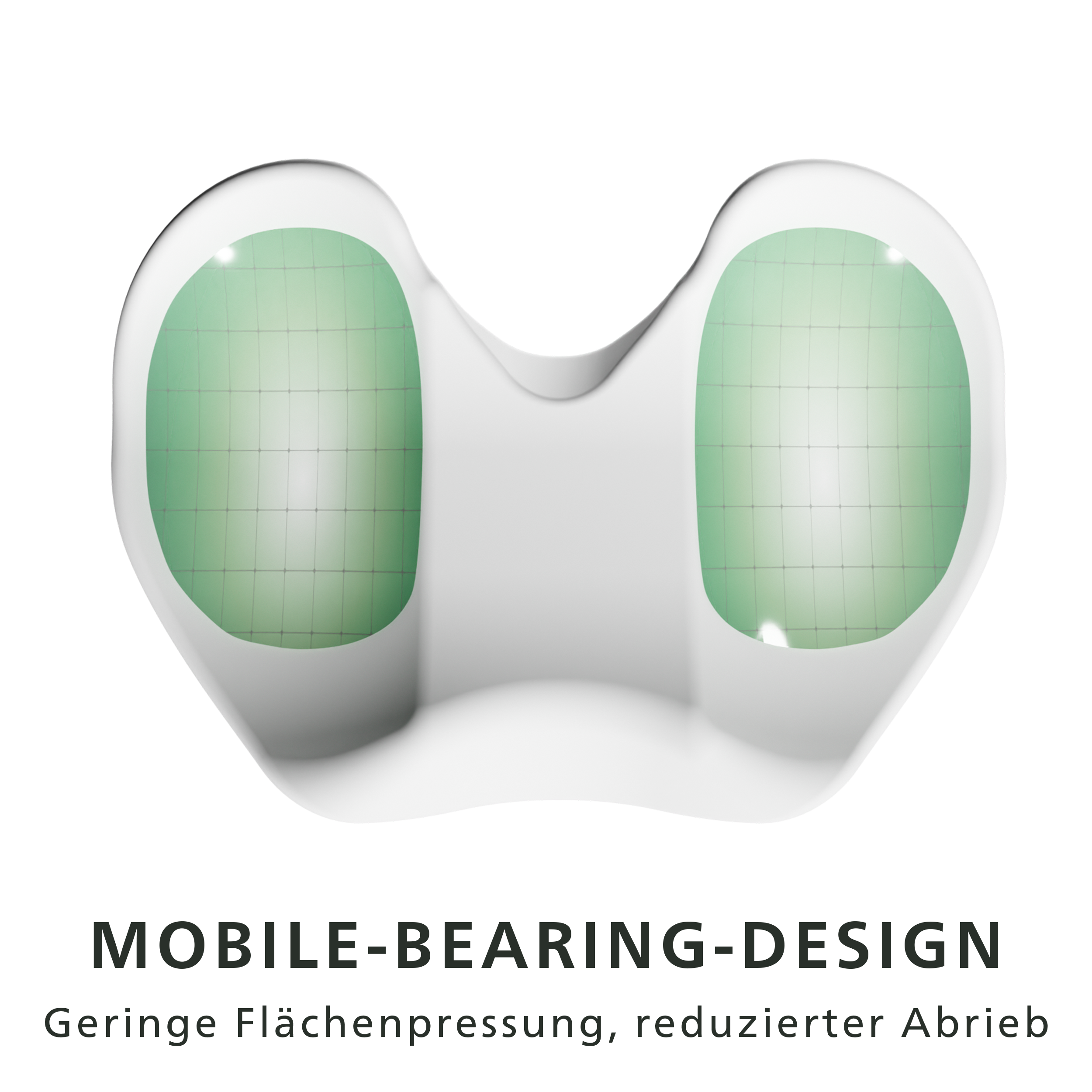 - Überlegene Gelenkfunktion durch die Kombination zweier Designmerkmale: SINGLE-RADIUS & MOBILE-BEARING