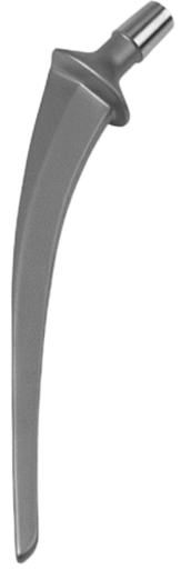 • Selbststabilisierung gegen Einsinken durch die konische Schaftform und den Prothesenkragen